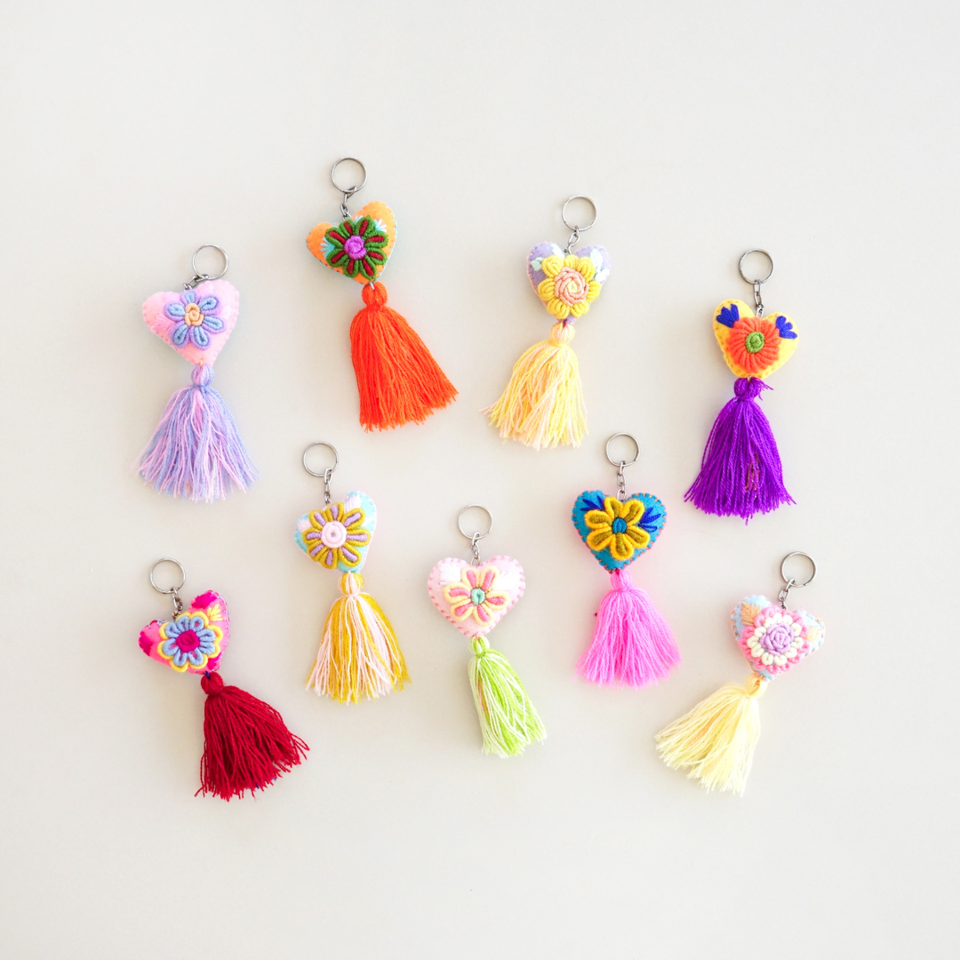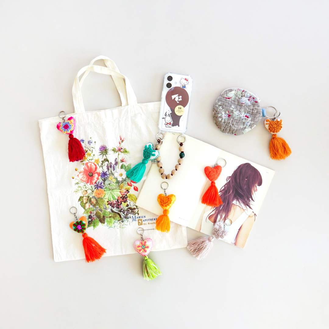 刺繍やフリンジの配色・刺繍のモチーフまで職人のセンスとこだわりで作られたチャームはまさに一点もの。自分だけのお気に入りのデザインを見つけて下さいね。