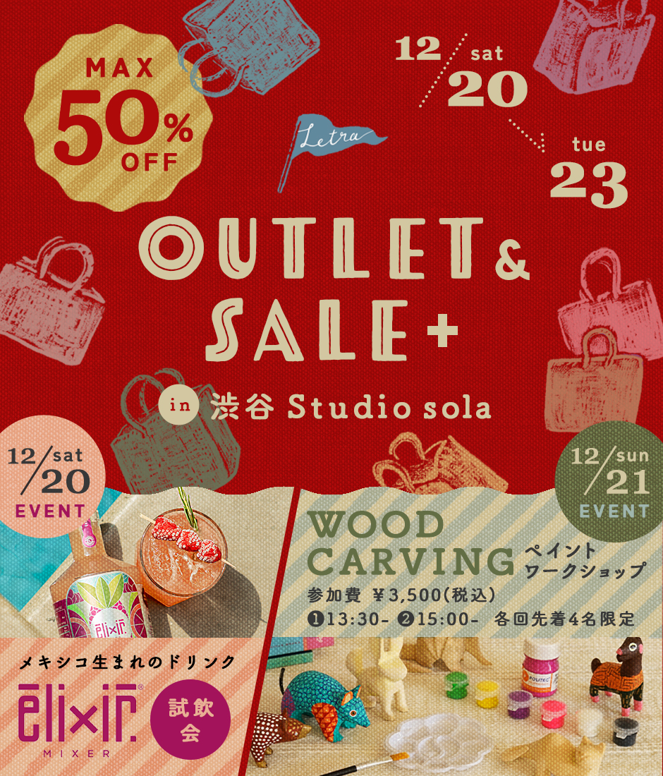 12/20(土)~12/23(火)の期間、渋谷のstudio SOLAにて”Letra OUTLET &SALE "+(プラス)”を開催することになりました。