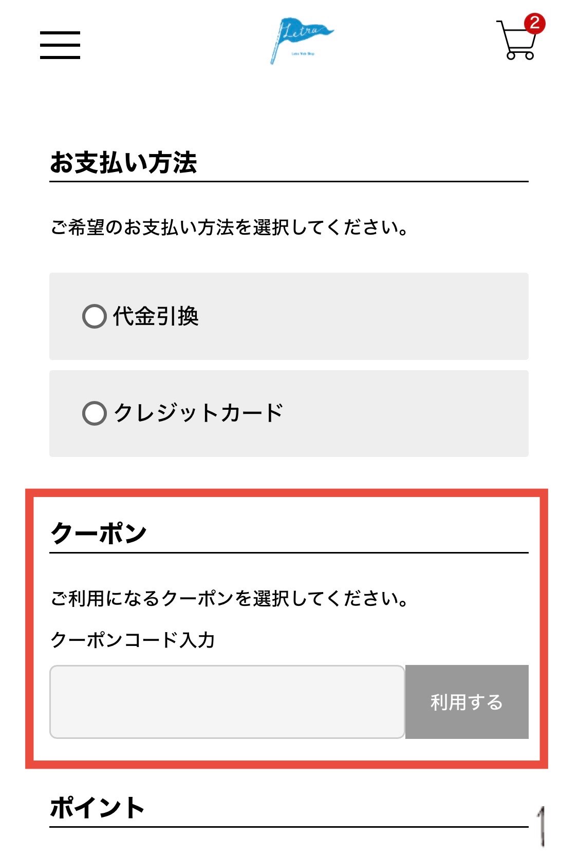 12/15(月)のメールマガジンで発行するクーポンコードを、お支払い情報の画面に表示される“ショップクーポンを利用する”にご入力いただきますと割引が適用されます。