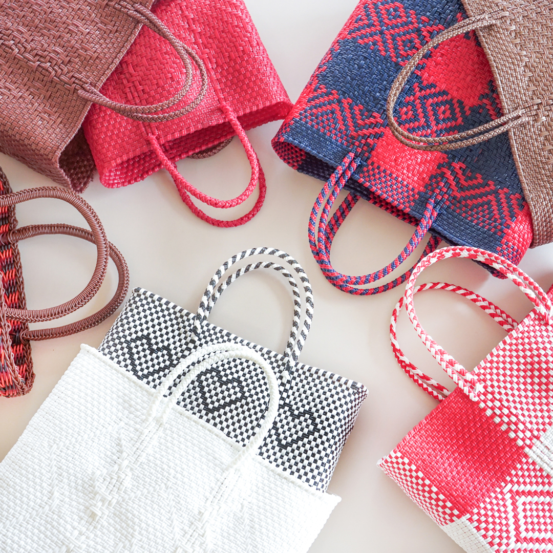 シンプルなものから凝ったデザイン、1点物のアソートなど、様々な種類があるメルカドバッグ。