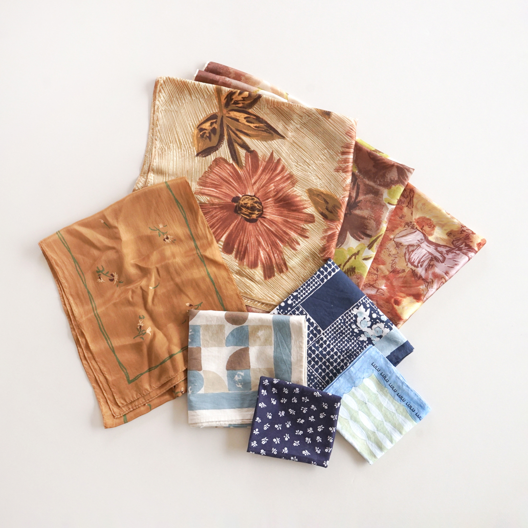 スカーフやハンカチなど、ファブリックアイテムもメルカドバッグのアレンジにお使いいただけるアイテムの1つ。
