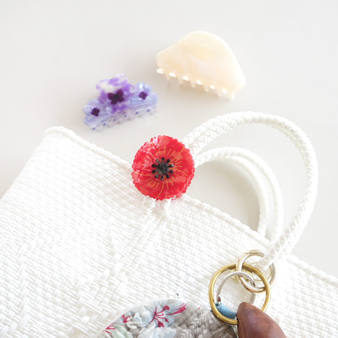 ヘアクリップはバッグのハンドルに挟むだけで、とても簡単にアレンジが出来るアイテム。