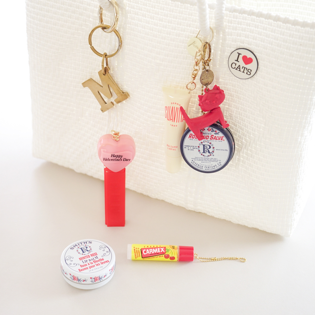 私もお気に入りのリップクリームや、ヴィンテージのPEZをチャームにしてみました。