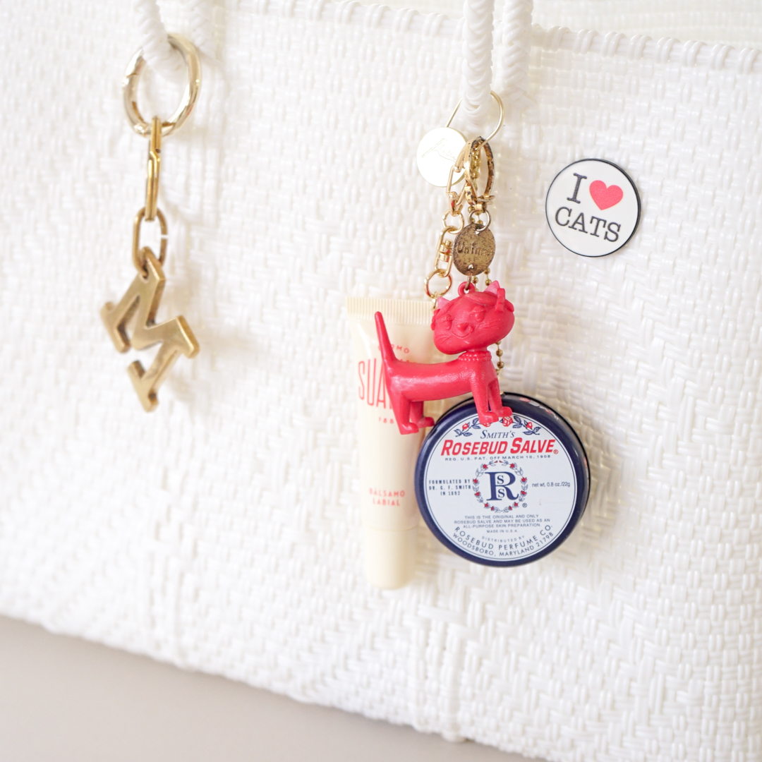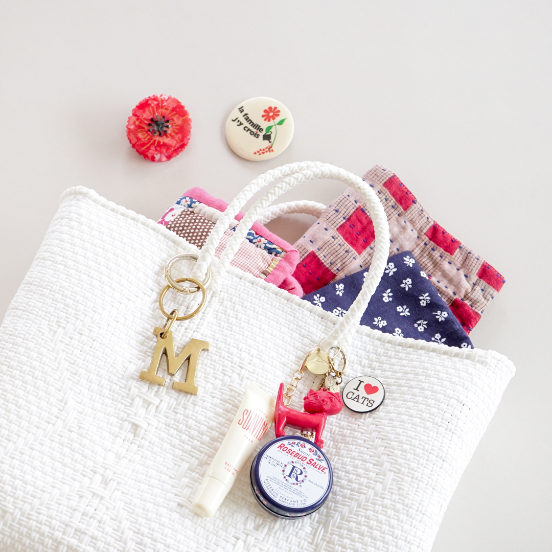 チェーンやループタイプのものはそのままハンドルへ、キーホルダータイプは Letraチャームに通すことが出来るので着脱も簡単。