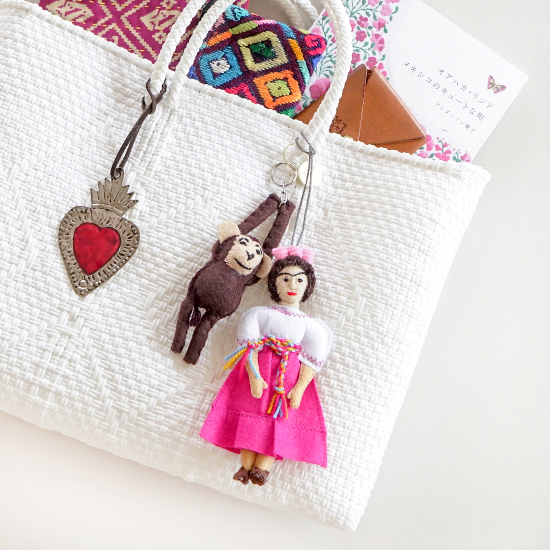 自分が身に着けるには可愛すぎてしまい、コレクションするだけでお蔵入りしていたのですが、最近はメルカドバッグのアレンジで活躍しています。