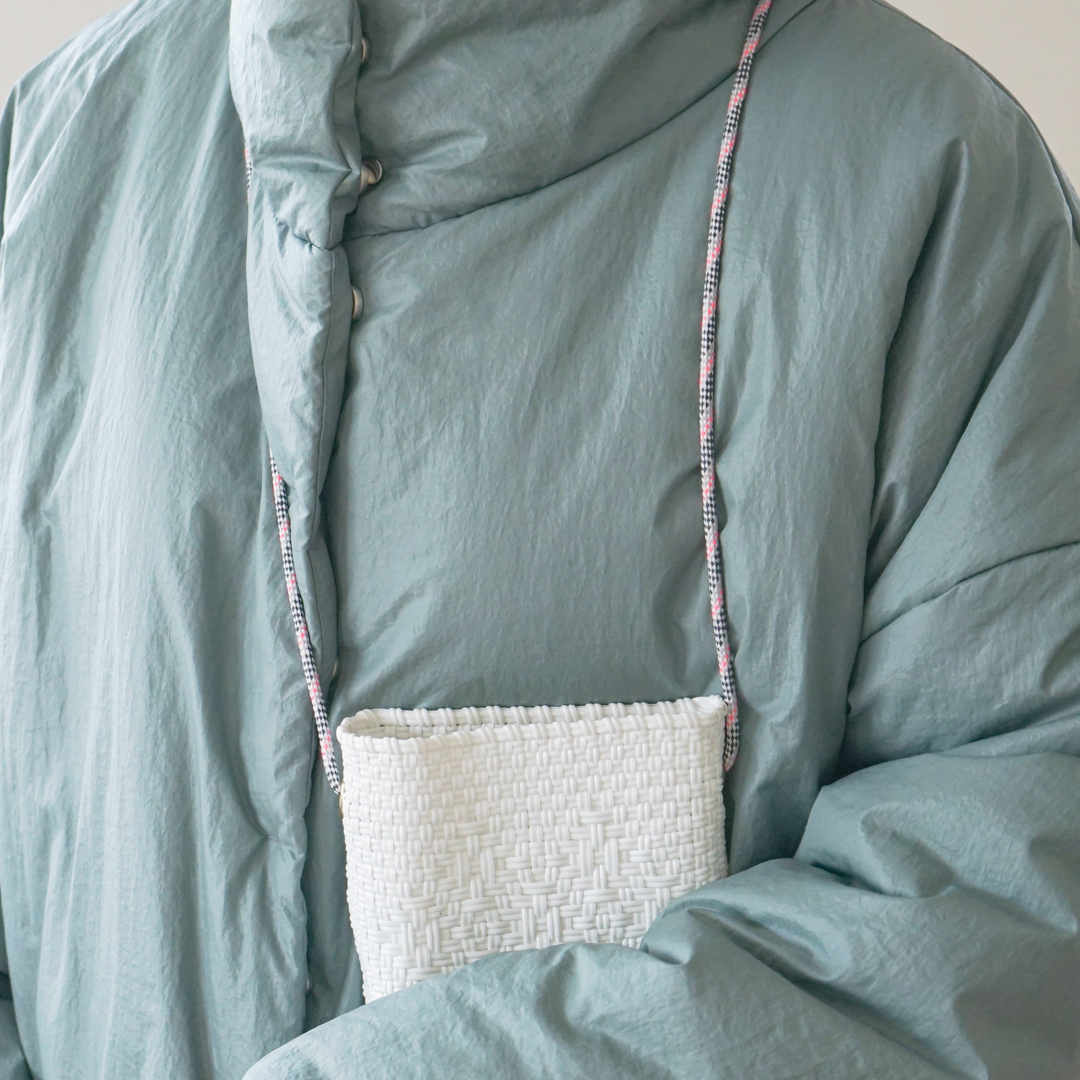 MERCADO POUCHは、メルカドバッグと同じコードで編んだ小さなバッグにショルダーがついたもの。