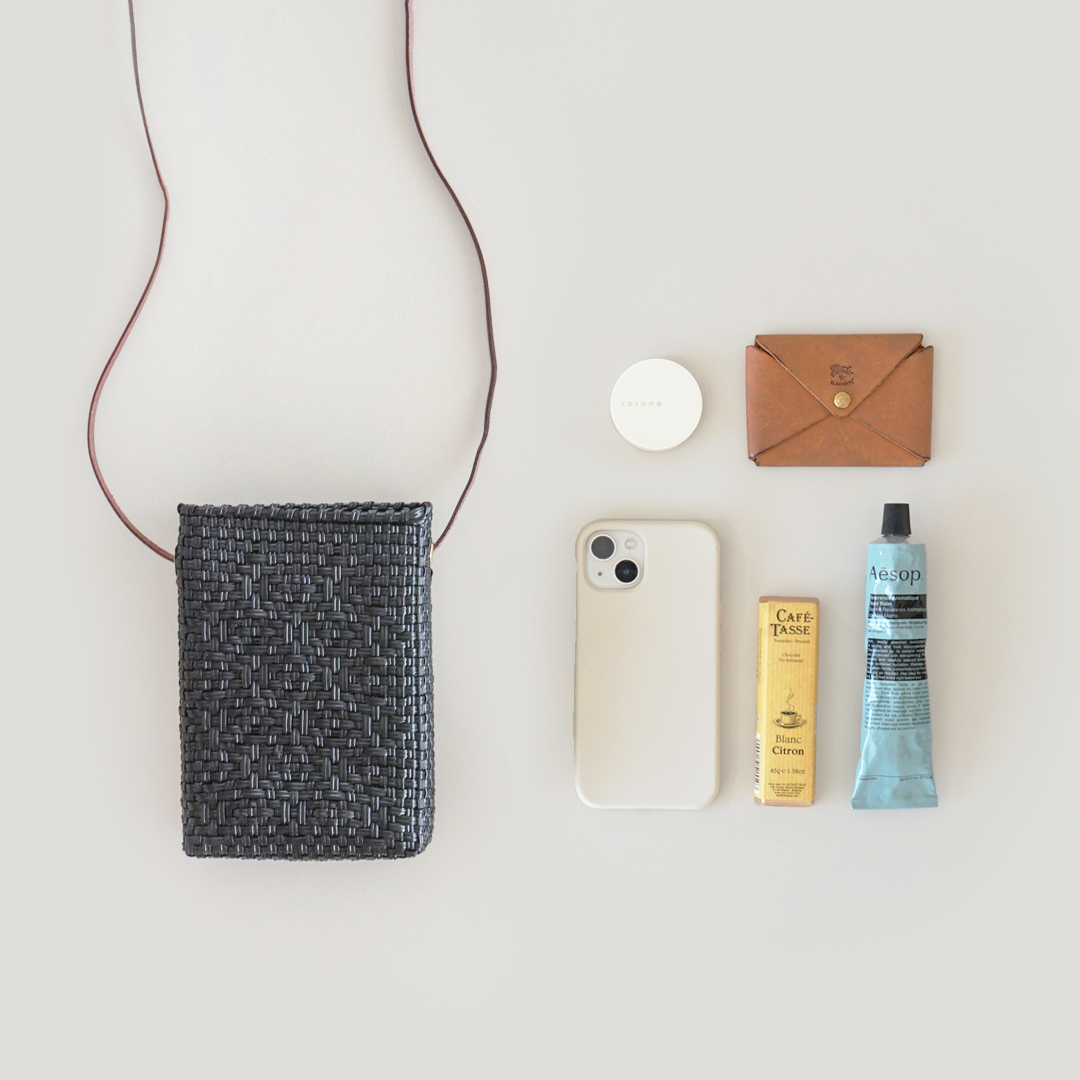 MERCADO POUCHの収納量はスマホと小銭、リップ等が入る大きめのポケットが一つ増えた感覚で、身軽にお出かけをしたい日におすすめです。