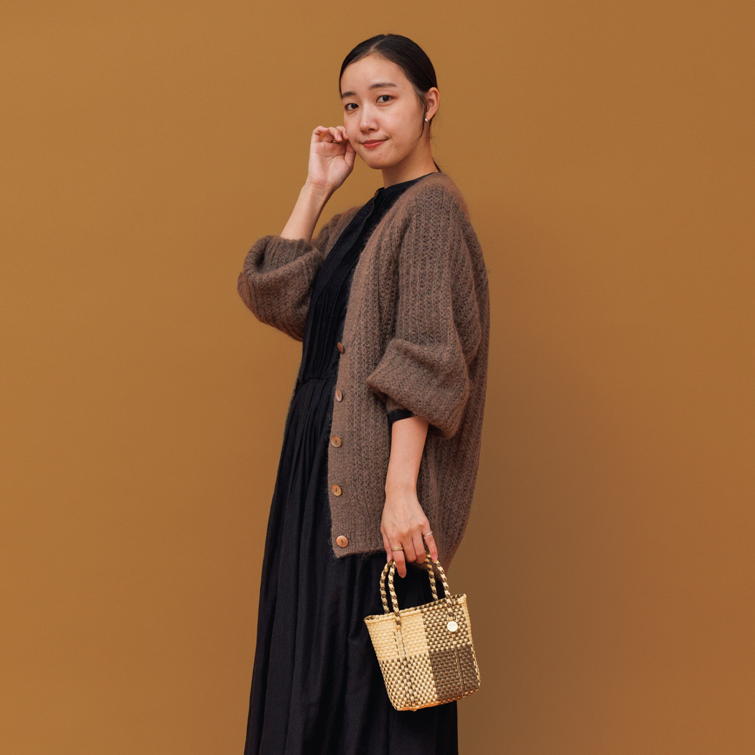 ベーシックな色味を使っていますが、しっかり存在感のある編み模様が施されているためコーディネートを引き立ててくれます。