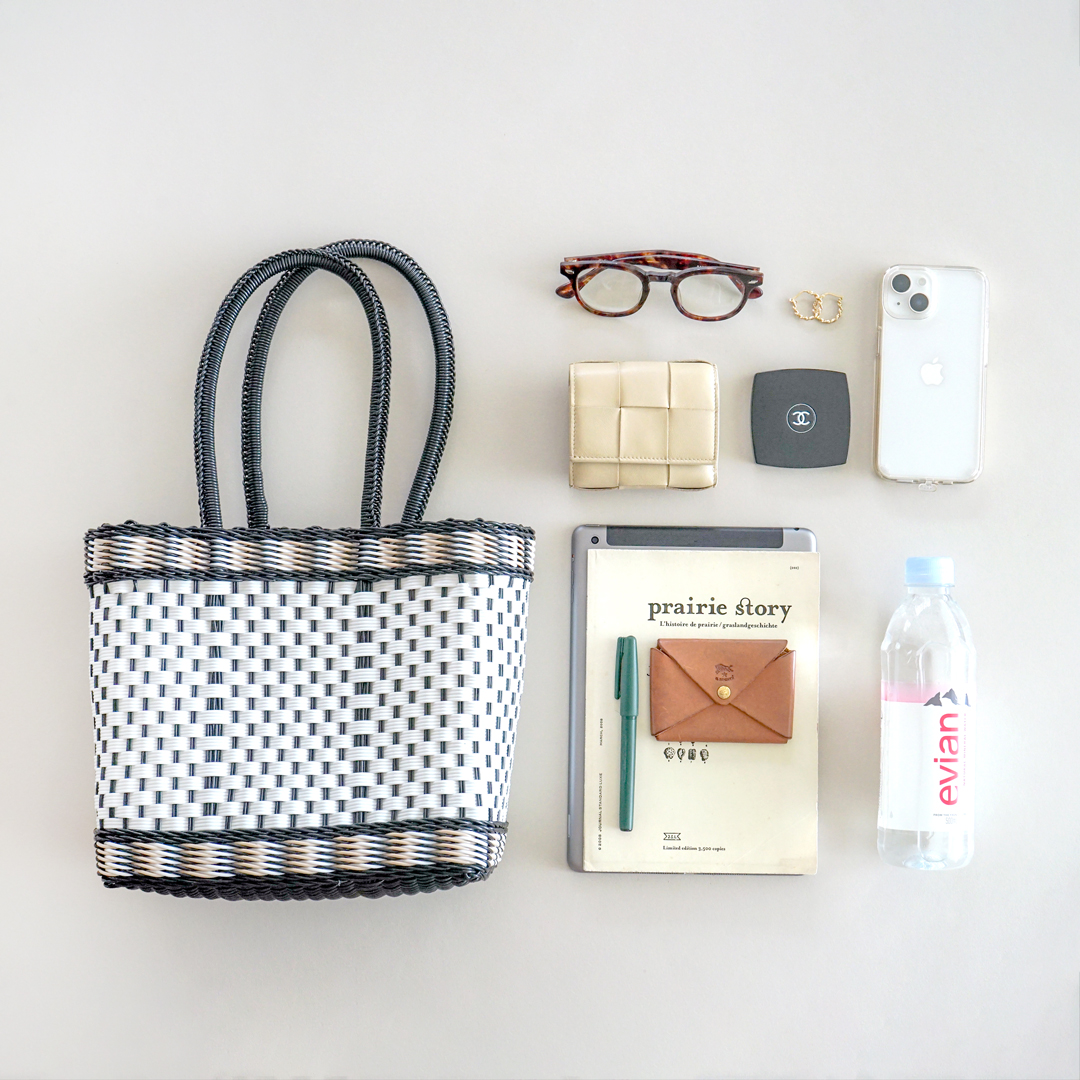バッグのボディは太いコードを使用することでしっかりとした作りになっていて、丸みを帯びたシルエットが特徴です。メルカドバッグ同様自立するのもうれしいポイントです。