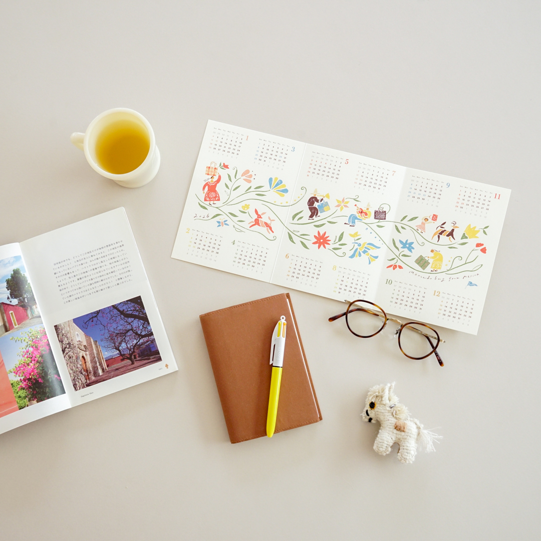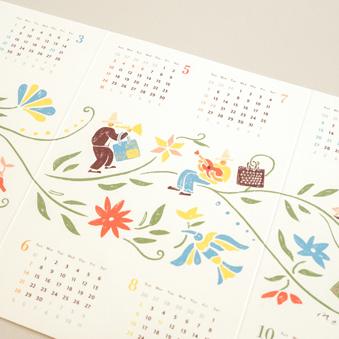 カレンダーにはオトミ刺繍をモチーフにしたイラストを添えています。