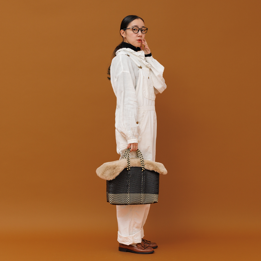 これからの時期におすすめなのはECO FUR BAG COVERを被せたアレンジ。