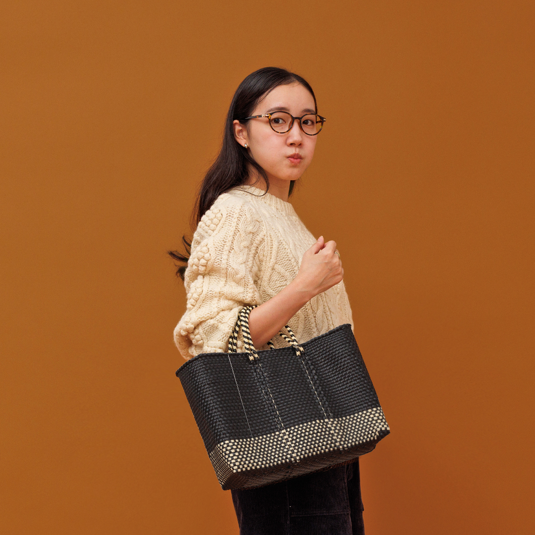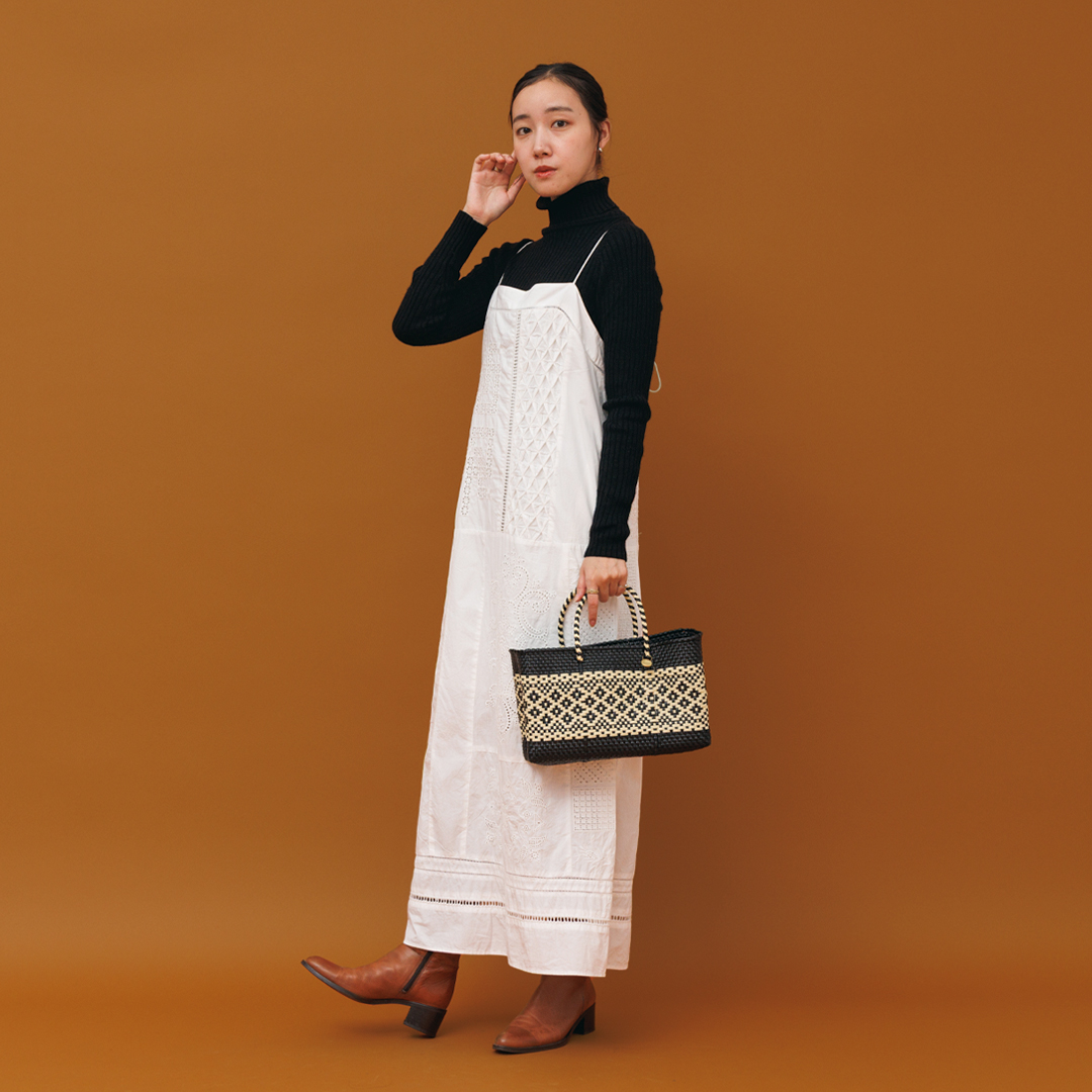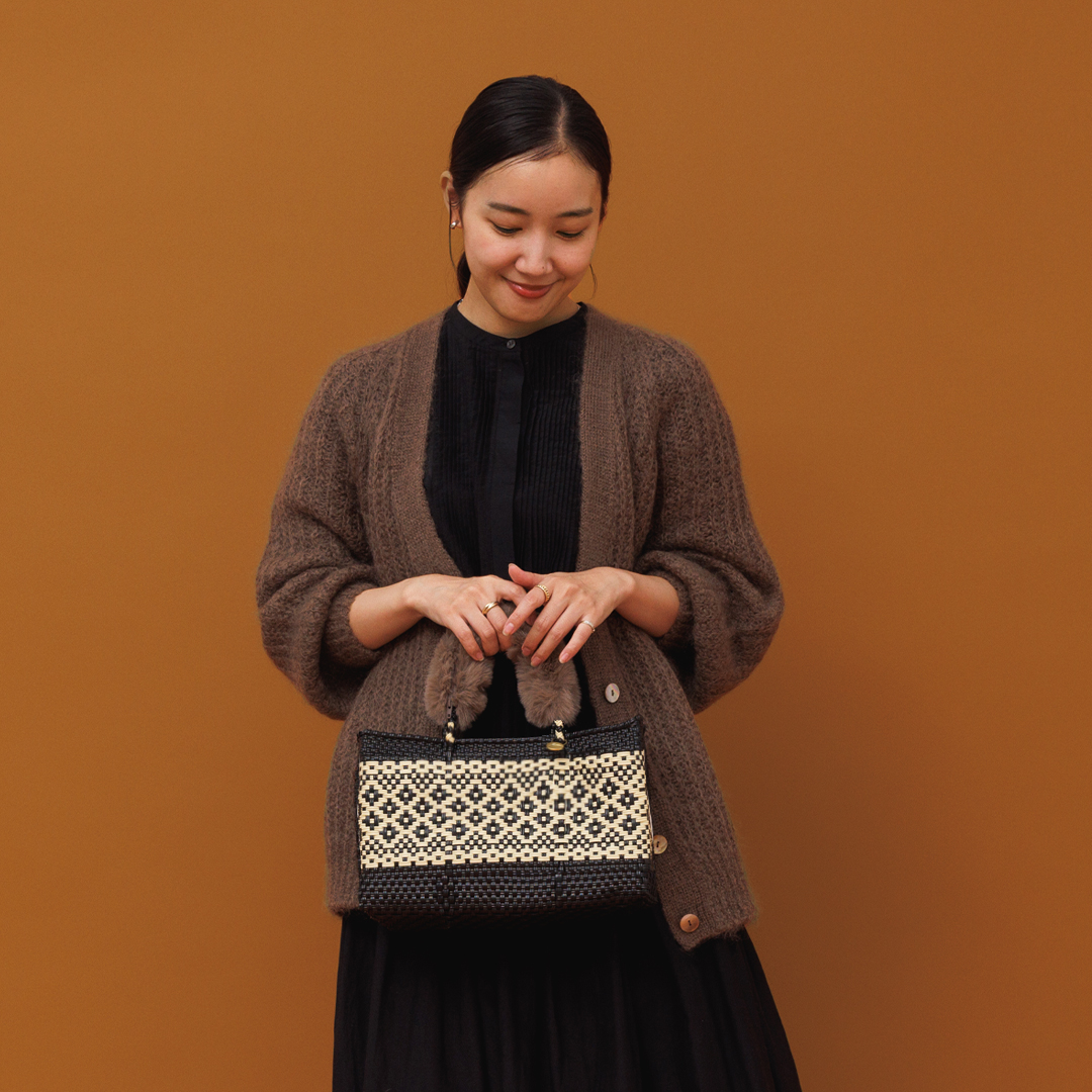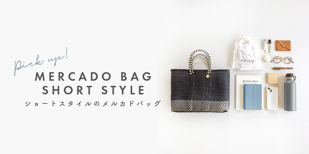 今の時期のおすすめはブラックとクリームのメルカドバッグ。