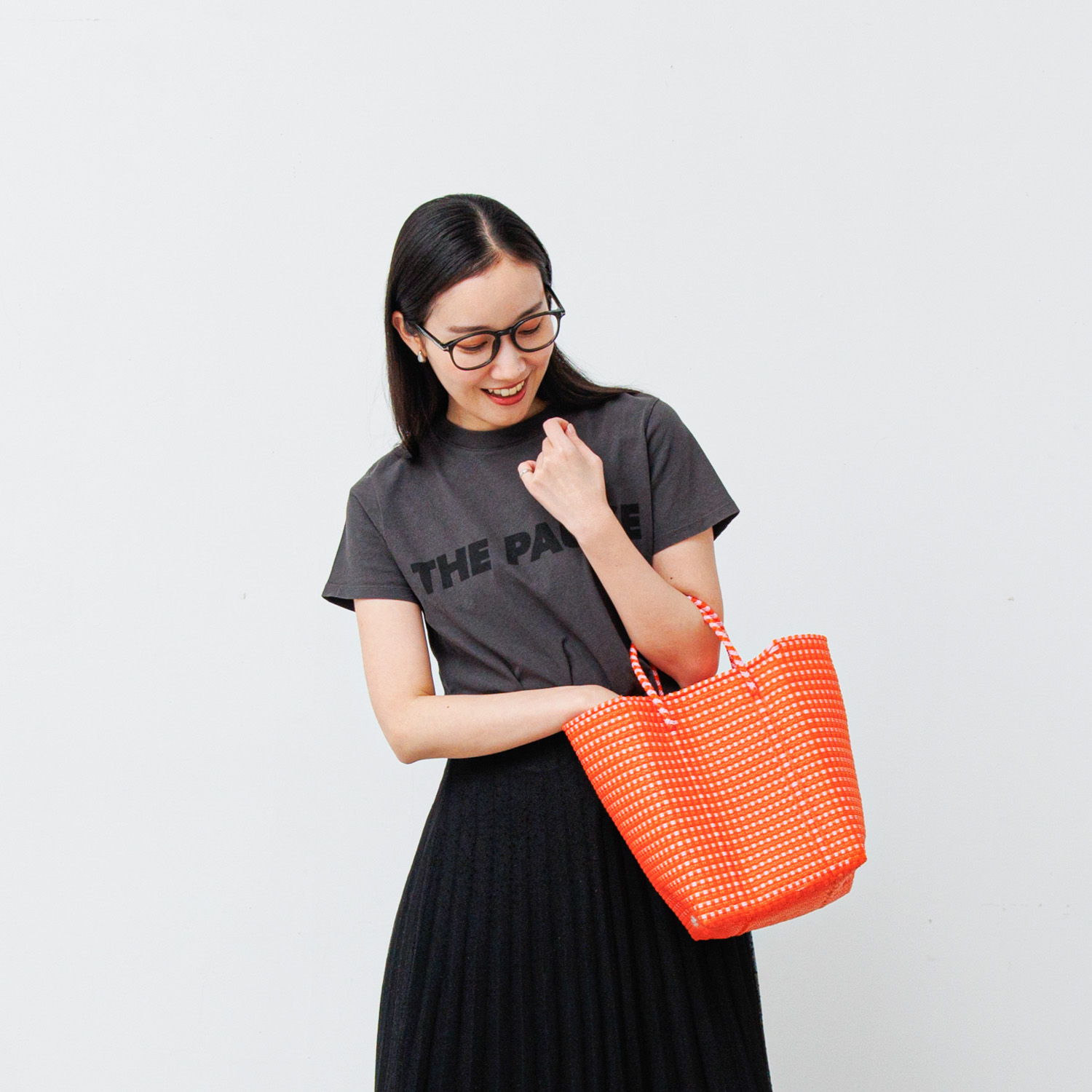 ビビットなピンク×オレンジの配色がコーディネートのポイントにぴったりのアイテム。