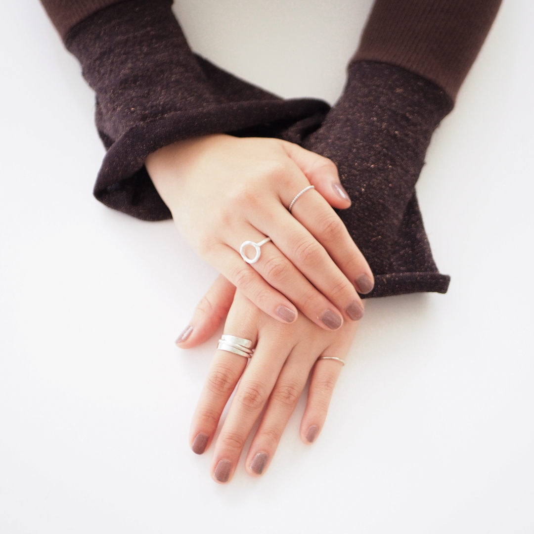 清潔感のあるシルバーのアクセサリーは手を美しく見せてくれます。